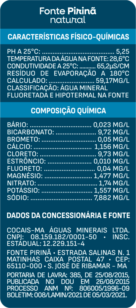 Nós temos o maior orgulho do nosso rótulo, porque ele é a prova definitiva da nossa pureza. Não utilizamos letras miúdas para esconder processos industriais ou ingredientes artificiais. A Água Mineral Cocais é classificada oficialmente como Água Mineral Fluoretada e Hipotermal na Fonte, o que significa que ela já sai da terra com a temperatura e os minerais perfeitos para o seu corpo. Abaixo, explicamos de forma simples o que você está bebendo.